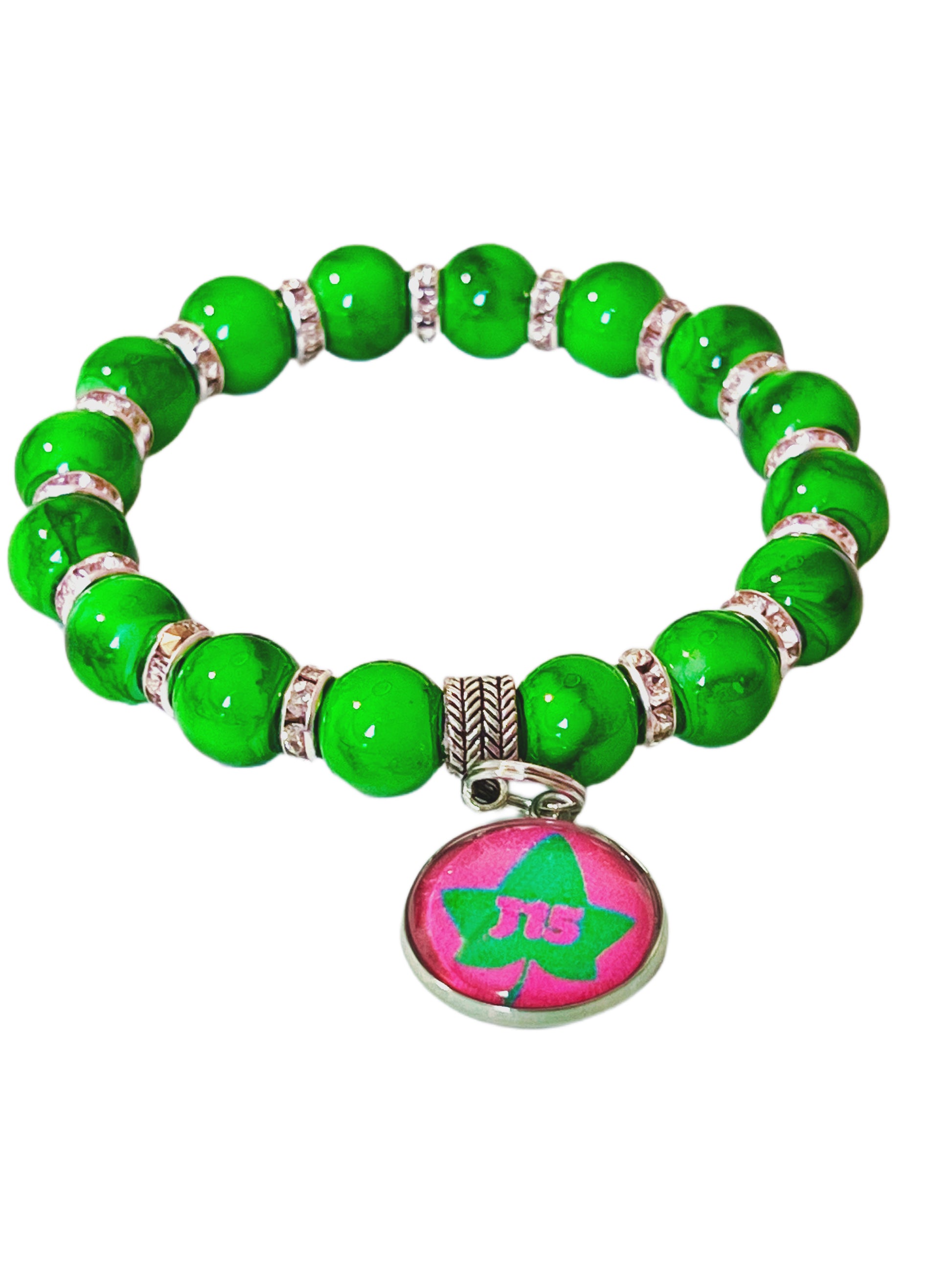 Deep toned green and pink AKA themed bracelet