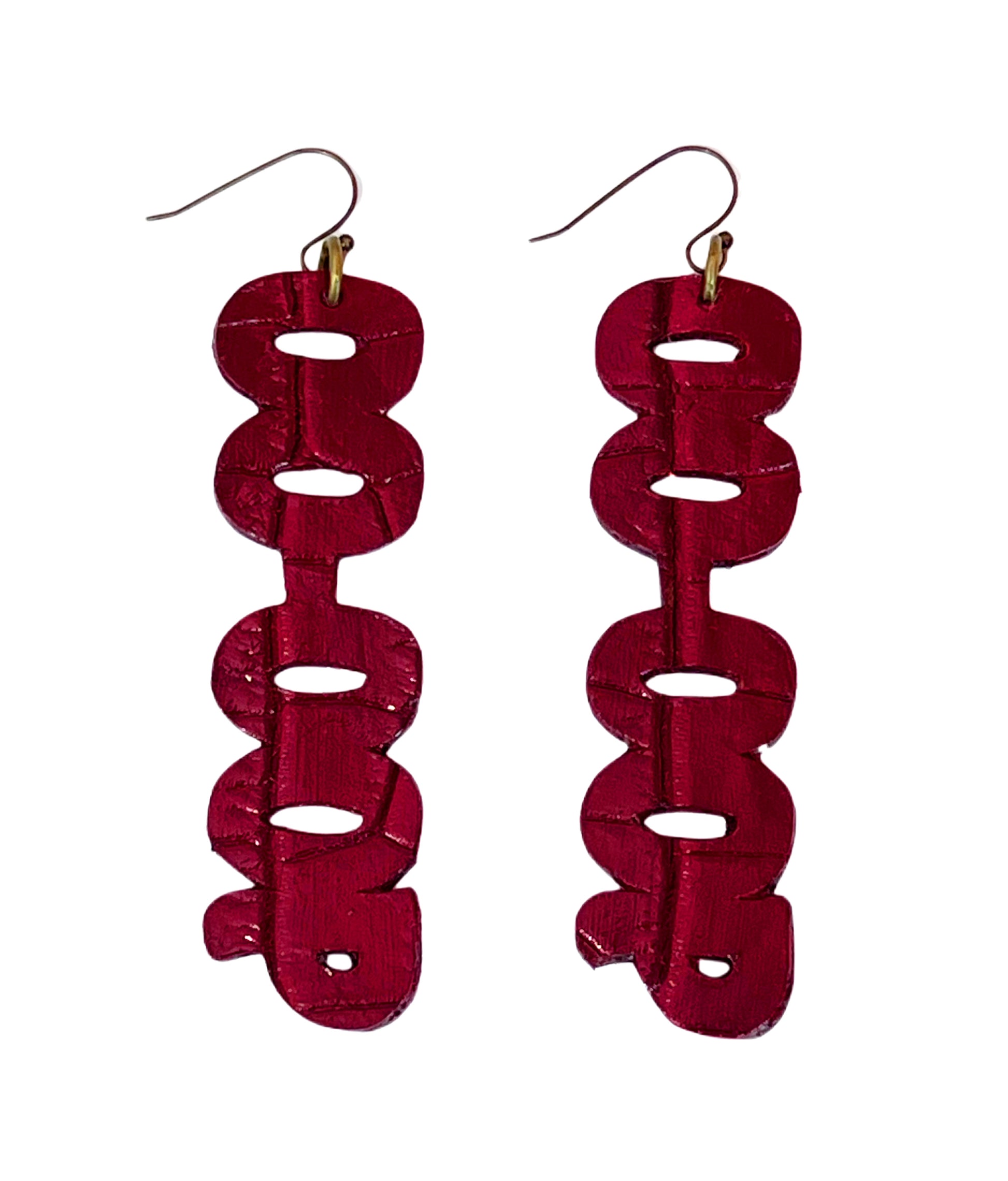 3.5” Handmade, double sided, genuine leather earrings. Delta themed.