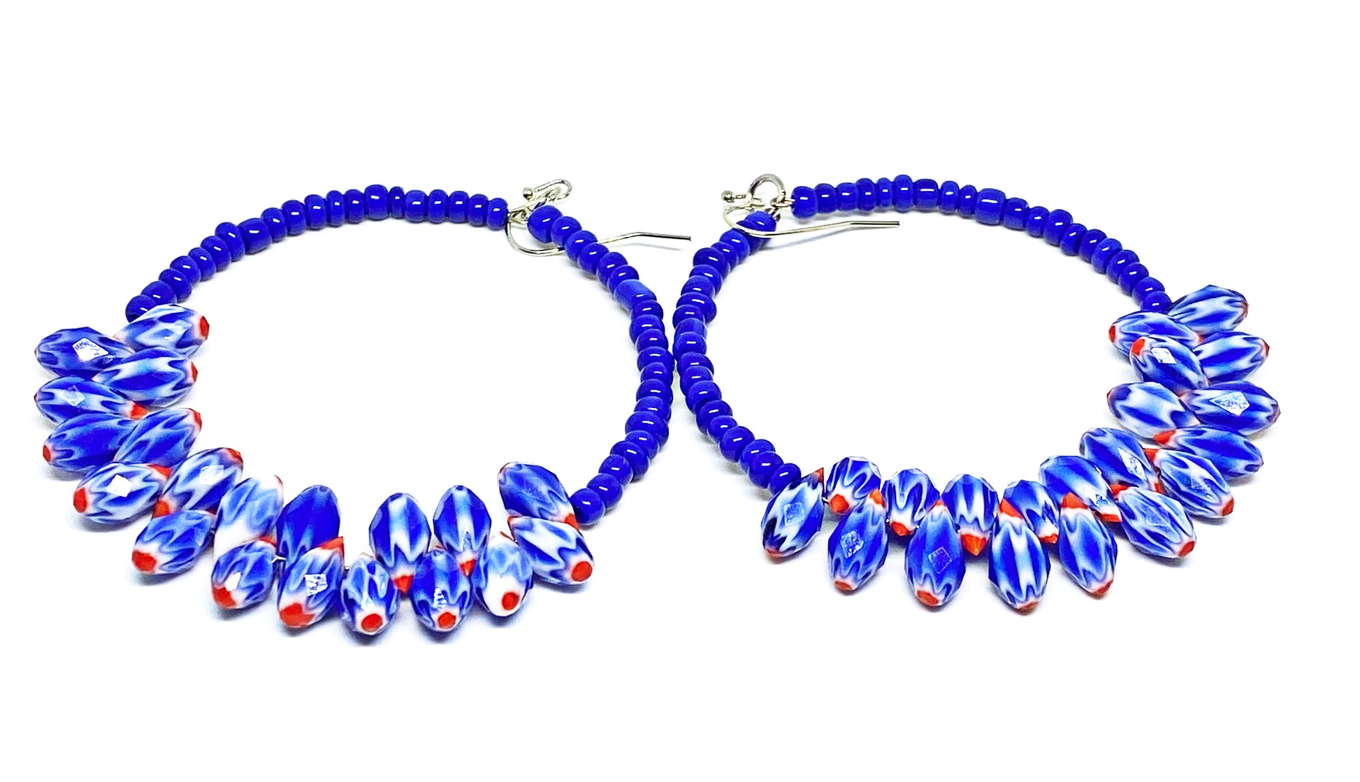Blue, white and red fashioned earrings