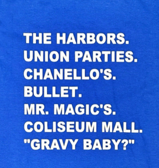 T shirt that celebrates some of the iconic places, events and people of the 1990s at Hampton University.