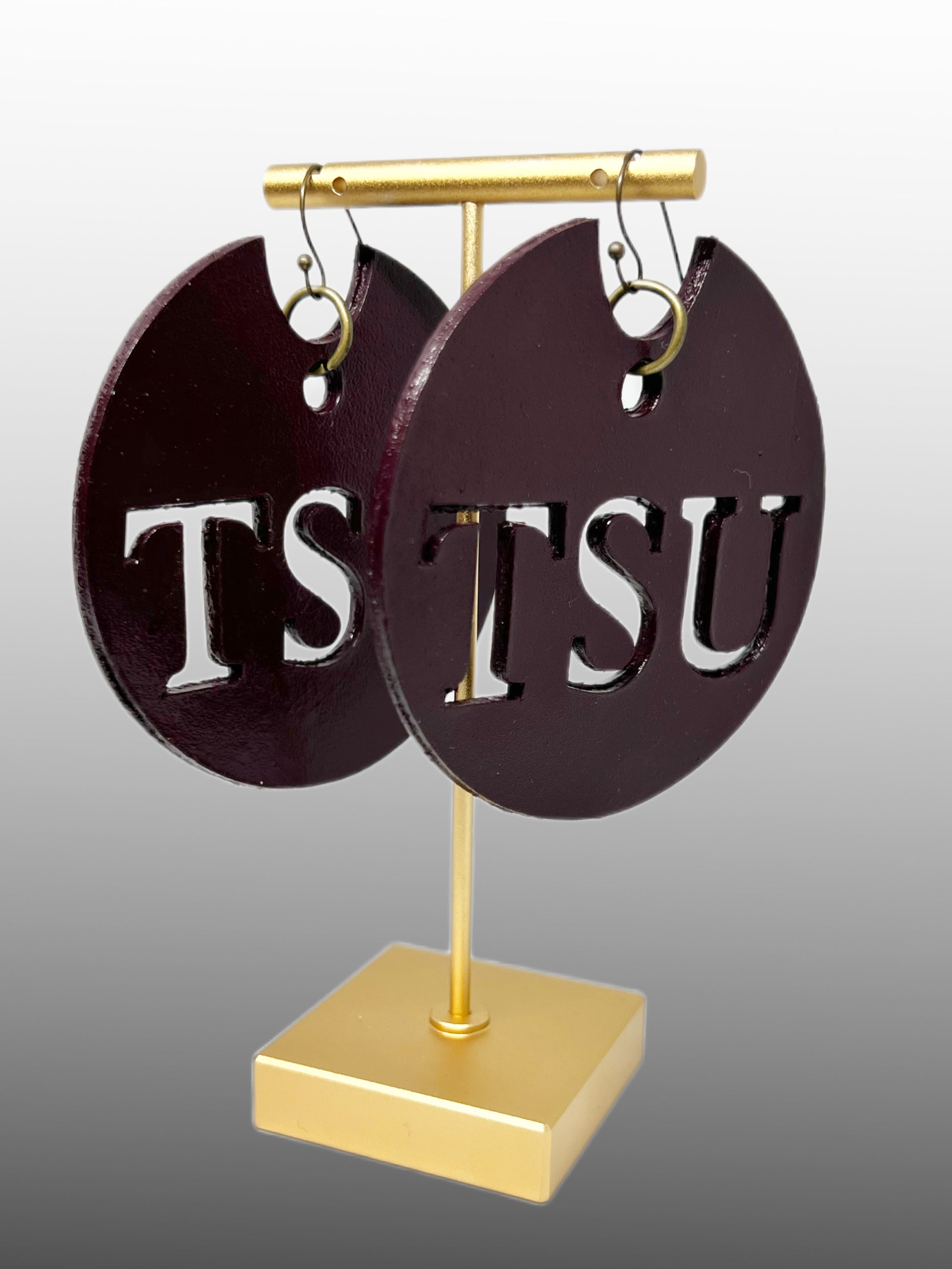 Texas Southern themed earrings. Genuine leather. Hand dyed. Hand made. 3”.
