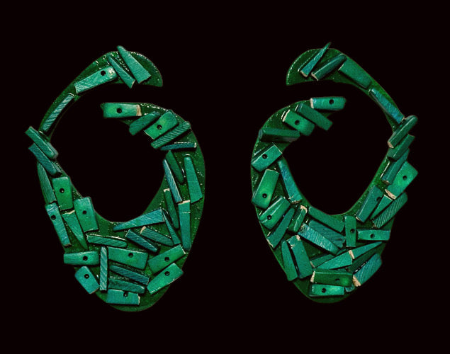 Custom designed. Handmade and painted. Wood and resin based.